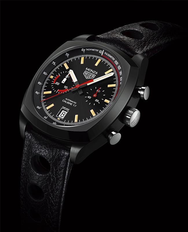 Специальная серия часов TAG Heuer Heritage Calibre 17 Monza Edition – это лимитированный выпуск, сочетающий в себе винтажный дизайн и современные технологии. Корпус из легкого и прочного титана диаметром 42 мм имеет необычную форму квадрата с выпуклыми скругленными сторонами. Ремень из черной кожи дополнен широкими круглыми отверстиями, застежка выполнена из титанового сплава.