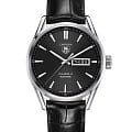 Элегантные часы TAG Heuer Carrera Calibre 5 Automatic Mens Black Leather Watch созданы для мужчин, которые ценят сдержанность и спортивный шик. Надежный и точный механизм Calibre 5 обладает запасом хода 38 часа. Узнаваемые вытянутые ушки стального корпуса, разметка, вынесенная на скошенный ободок циферблата, и архитектурный дизайн делают эту модель превосходным образцом элегантного стиля. Черный циферблат украшен объемным узором в виде расходящихся из центра концентрических кругов, что добавляет глубины и красивых переливов цвета. Часы оснащены не только функцией даты, но и дня недели, дополнительное окошко которого разместилось рядом с апертурой даты напротив отметки "3 часа". Черный ремешок из кожи аллигатора обеспечивает эргономичную посадку часов, а прочное сапфировое стекло защитит от царапин.