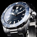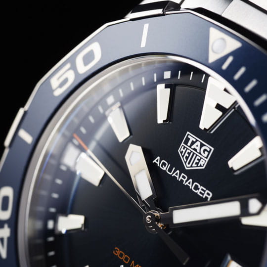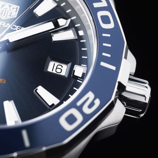 TAG Heuer Aquaracer WAY111C.BA0928 — элегантные мужские часы, сочетающие в себе стиль и функциональность. Корпус диаметром 41 мм выполнен из нержавеющей стали, а безельБезельВнешний ободок, закрепляющий стекло. В спортивных часах так называется поворотное кольцо с делениями на циферблате, выполняет роль таймера – замеряет отрезки времени на шкале. Неподвижный безель – элемент декора. Однонаправленно вращающийся безель на дайверских часах позволяет фиксировать моменты погружения и выныривания на поверхность. также изготовлен из стали и алюминия с PVD-покрытиемPVDУльтратонкое покрытие наносится в технике вакуумного напыления, сочетает в себе нитрид титана особой прочности со слоем золота или оксида хрома. Несёт в себе декоративную или защитную функцию., что придаёт модели дополнительную прочность и долговечность. Синий циферблат с солнечным узором оснащён накладными часовыми метками и стрелками с люминесцентным покрытиемЛюминесцентное покрытиеПозволяет считывать показания времени в темноте. Производители наносят на стрелки, часовые индексы, безель или поверхность циферблата светонакопительный состав, дающий холодное свечение., обеспечивающим отличную читаемость в любых условиях освещения. Часы оснащены точным кварцевым механизмом, гарантирующим надёжное отображение времени. Функциональность включает индикацию часов, минут, секунд и даты. Сапфировое стеклоСапфировое стеклоПрочный и надёжный материал из кристалла сапфира синтетического происхождения, характеризующийся особой твёрдостью и устойчивостью к царапинам и повреждениям. с антибликовым покрытиемАнтибликовое покрытиеСлой оксида металла в 0,13-0,3 микрон, благодаря которому стекло часов не бликует и не отражает свет. Антибликовое покрытие уменьшает отражение света в 10 раз, обеспечивая отличную читаемость показателей циферблата. обеспечивает защиту от царапин и превосходную читаемость. Браслет из нержавеющей стали оснащён раскладной застёжкойРаскладная застёжкаТакой тип застёжки используется только на браслетах из металла. Она никогда не раскрывается полностью, происходит разделение на 2 и более частей. Раскладывающая застёжка снизит вероятность потери часов к минимуму. с кнопками для дополнительной безопасности. Водозащита до 300 метров (30 бар) делает модель подходящей для дайвинга и других водных видов спорта.