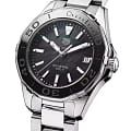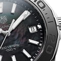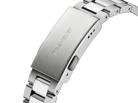 TAG Heuer Aquaracer WAY131K.BA0748 — элегантные женские часы, сочетающие стиль и функциональность. Корпус диаметром 35 мм и толщиной 10,75 мм выполнен из полированной нержавеющей стали, обеспечивая долговечность и устойчивость к коррозии. Лакированный циферблат оснащён накладными часовыми метками и стрелками с люминесцентным покрытиемЛюминесцентное покрытиеПозволяет считывать показания времени в темноте. Производители наносят на стрелки, часовые индексы, безель или поверхность циферблата светонакопительный состав, дающий холодное свечение., обеспечивающим отличную читаемость в любых условиях освещения. Его поверхность защищена сапфировым стекломСапфировое стеклоПрочный и надёжный материал из кристалла сапфира синтетического происхождения, характеризующийся особой твёрдостью и устойчивостью к царапинам и повреждениям., устойчивым к царапинам. Часы оснащены точным кварцевым механизмом, обеспечивающим стабильное отображение времени. Функциональность включает индикацию часов, минут, секунд и даты, расположенной на отметке «3 часа». БезельБезельВнешний ободок, закрепляющий стекло. В спортивных часах так называется поворотное кольцо с делениями на циферблате, выполняет роль таймера – замеряет отрезки времени на шкале. Неподвижный безель – элемент декора. Однонаправленно вращающийся безель на дайверских часах позволяет фиксировать моменты погружения и выныривания на поверхность. однонаправленный вращающийся, выполнен из стали, устойчивой к царапинам. Водозащита до 300 метров (30 бар) делает модель подходящей для дайвинга и активного образа жизни. Стальной браслет на раскладной застёжкеРаскладная застёжкаТакой тип застёжки используется только на браслетах из металла. Она никогда не раскрывается полностью, происходит разделение на 2 и более частей. Раскладывающая застёжка снизит вероятность потери часов к минимуму..