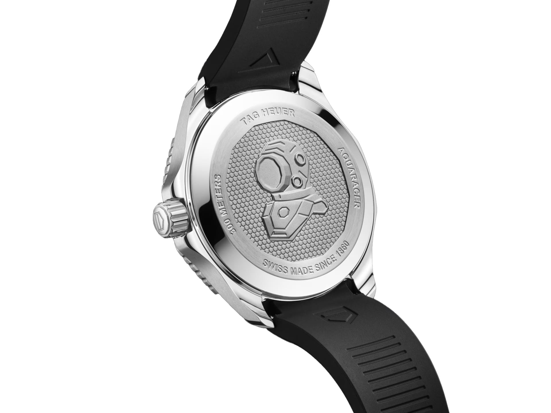 Мужские швейцарские часы TAG Heuer Aquaracer Professional 300 Date WBP5110.FT6257. Запас хода 80 часов. Окошко даты с увеличительным стеклом. Поворотный безельБезельВнешний ободок, закрепляющий стекло. В спортивных часах так называется поворотное кольцо с делениями на циферблате, выполняет роль таймера – замеряет отрезки времени на шкале. Неподвижный безель – элемент декора. Однонаправленно вращающийся безель на дайверских часах позволяет фиксировать моменты погружения и выныривания на поверхность. из керамики. Завинчивающаяся заводная головка с защитой. Титановая задняя крышка с выгравированным изображением водолазного шлема. Стрелки и метки с люминесцентным покрытиемЛюминесцентное покрытиеПозволяет считывать показания времени в темноте. Производители наносят на стрелки, часовые индексы, безель или поверхность циферблата светонакопительный состав, дающий холодное свечение..