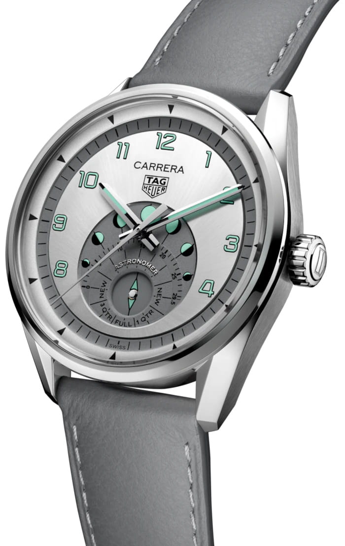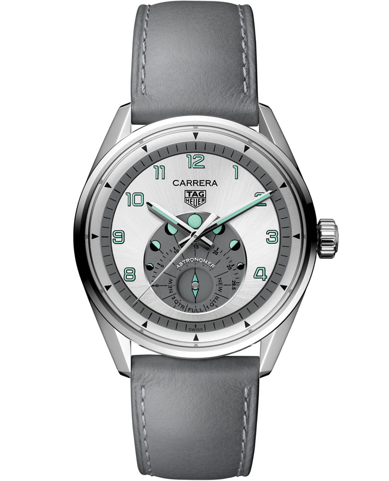 Часы TAG Heuer Carrera TAG Heuer Carrera Astronomer WBX2112.FC6615 созданы для стильных мужчин. Механический механизм (автоматический калибр) с высокой точностью и с 50-часовым запасом хода. Сапфировое стеклоСапфировое стеклоПрочный и надёжный материал из кристалла сапфира синтетического происхождения, характеризующийся особой твёрдостью и устойчивостью к царапинам и повреждениям. устойчивое к появлению царапин, обладающее высокой прозрачностью. Класс водозащиты: 100 метров, позволит плавать, нырять и заниматься другими водными видами спорта. Стрелки с люминесцентным покрытиемЛюминесцентное покрытиеПозволяет считывать показания времени в темноте. Производители наносят на стрелки, часовые индексы, безель или поверхность циферблата светонакопительный состав, дающий холодное свечение. позволяют легко считывать время даже в условиях недостаточного освещения. Завинчивающаяся задняя крышка украшена специальной гравировкой с изображением обсерватории и звёздного неба. По центру, у отметки «6 часов», расположен серебристый диск указателя фаз Луны, обрамлённый оригинальной шкалой, которая позволяет визуально следить за ходом лунного цикла. Часы оснащены ремешком из кожи со стандартной застежкой, которая гарантируют комфортную посадку на запястье. Модель выпущена ограниченной серией 500 экземпляров. TAG Heuer Carrera олицетворяет непринужденную элегантность и представляет свежий взгляд на настоящую классику.