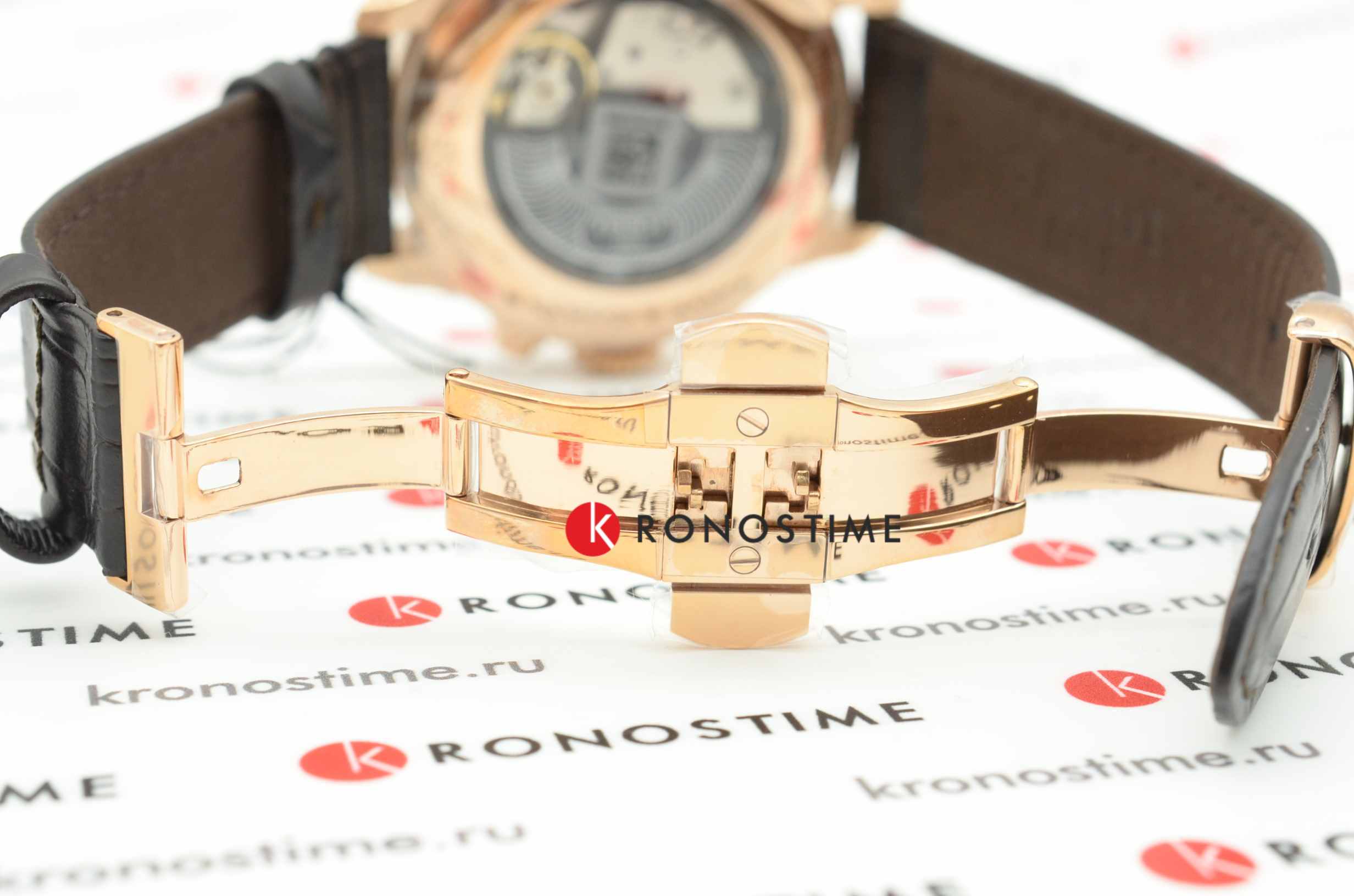 Брендовый хронографХронографФункция позволяет измерять отрезки времени с особой точностью: часы, минуты, секунды. Верным признаком хронографа является наличие на циферблате 3 дополнительных окошек-счётчиков. с характерным для данной серии узором по ободку циферблата станет элегантным дополнением вашего образа. Корпус выполнен из нержавеющей стали 316L, материал отличается долговечностью и устойчивостью к царапинам и повреждениям, имеется PVD-покрытиеPVDУльтратонкое покрытие наносится в технике вакуумного напыления, сочетает в себе нитрид титана особой прочности со слоем золота или оксида хрома. Несёт в себе декоративную или защитную функцию. в цвете розового золота. За отменную точность хода отвечает швейцарский автоматический калибр ETA C01.211 с запасом хода 45 часов. Скелетонизированная задняя крышка. Сапфировое стекло. Водостойкость при давлении до 10 бар. Функция секундомера, отображение текущего стекла. . Габариты: 44 x 44 x 15,2 мм.