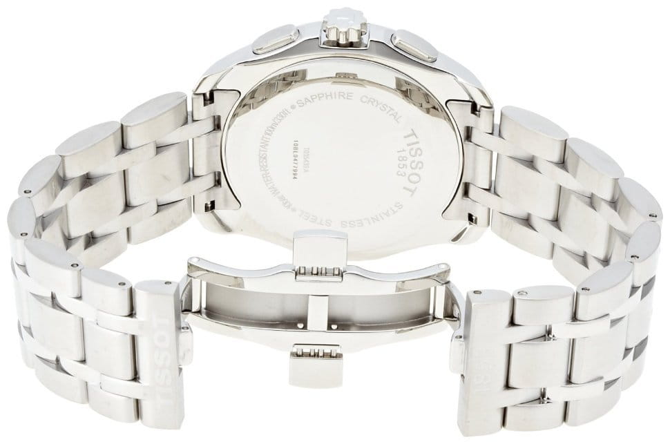 TISSOT T0354391103100 T-Trend Couturier Quartz - мужские кварцевые наручные часы Корпус этих часов среднего размера (41 мм) и выполнен из нержавеющей стали L316 металлического цвета Модель TISSOT T0354391103100 T-Trend Couturier Quartz имеет устойчивое к царапинам сапфировое стекло, браслет из нержавающей стали металлического цвета, белый циферблат Калибр механизма: ETA G10961 Класс водозащиты: 100 м / 10 АТМ (разрешается плавание и ныряние без акваланга) Дополнительные функции и особенности: отображение числа, второе время (GMT), хронограф (секундомер), тахиметр Полная заводская комплектация TISSOT: оригинальные часы, фирменная коробка, инструкция, сервисная книжка, роман о часовой фабрике, миникаталог, замшевый фирменный чехол черного цвета для хранения и/или переноски часов, кассовый и товарный чеки Международная гарантия 2 года Производство и сборка: Швейцария