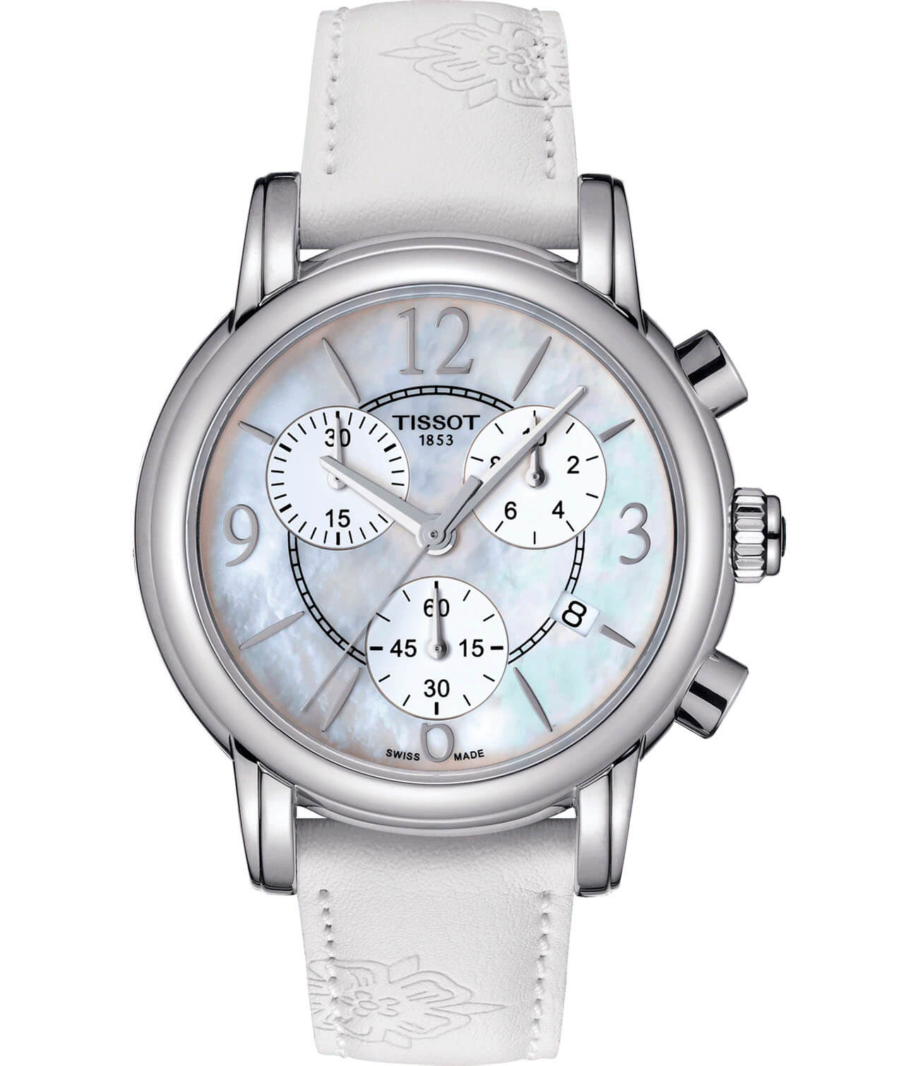 Спортивная модель дополнена оригинальными элементами, сочетание которых придаст вашему образу неповторимый шарм и эксклюзивность. Перламутр, прочный ремешок с цветочным орнаментом, белый сияющий оттенок - ни одна особа не сможет устоять перед таким аксессуаром. Кварцевый калибр ETA G15.211. Надёжное сапфировое стекло. Корпус из нержавеющей стали 316L. ХронографХронографФункция позволяет измерять отрезки времени с особой точностью: часы, минуты, секунды. Верным признаком хронографа является наличие на циферблате 3 дополнительных окошек-счётчиков., секундомер, апертура даты. Габариты: 35 x 35 x 10 мм.