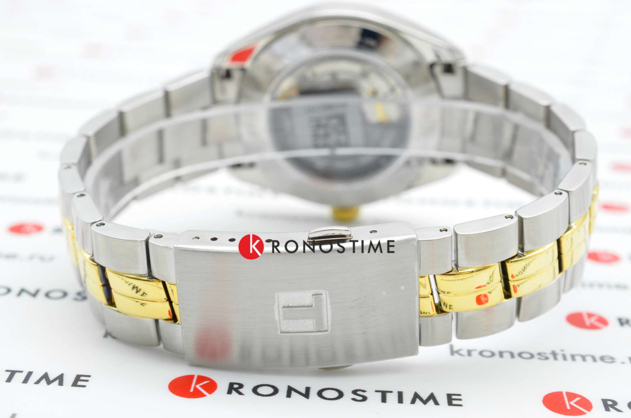 Лаконичное оформление аксессуара приглянётся любителям классики и утончённого стиля. Часы с автоматической системой завода работают за счёт швейцарского калибра Powermatic 80Powermatic 80Эксклюзивный калибр от швейцарской компании ETA с увеличенным запасом хода до 80 часов за счёт удлинённой заводной пружины. Характеризуется улучшенной системой спуска со сниженным трением. с увеличенным запасом хода. Задняя крышка прозрачная. Браслет и корпус с золотистым PVD-покрытиемPVDУльтратонкое покрытие наносится в технике вакуумного напыления, сочетает в себе нитрид титана особой прочности со слоем золота или оксида хрома. Несёт в себе декоративную или защитную функцию.. Водонепроницаемость 100 метров. Люминесцентная подсветкаЛюминесцентное покрытиеПозволяет считывать показания времени в темноте. Производители наносят на стрелки, часовые индексы, безель или поверхность циферблата светонакопительный состав, дающий холодное свечение.. Апертура даты. Габариты: 39 x 39 x 10,4 мм.