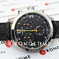 Секундная стрелка и стрелки счётчиков хронографаХронографФункция позволяет измерять отрезки времени с особой точностью: часы, минуты, секунды. Верным признаком хронографа является наличие на циферблате 3 дополнительных окошек-счётчиков. выполнены в жёлтом цвете, такая особенность привносит в общую картину эксклюзивность и спортивные элементы. Стильный аксессуар будет гармонично смотреться как с брючным строгим костюмом, так и с образом с джинсами. Часы комплектуются ремешком из натуральной кожи с рисунком под кожу крокодила.Кварцевый калибр ETA G10.211. Прочное сапфировое стекло. Возможности: хронограф, секундомер, тахиметрТахиметрРазмеченная шкала, располагается на ободке или безеле часов. Тахиметр позволяет рассчитать скорость на определённом участке пути, расстояние измеряется в километрах или милях., отображение текущей даты. Габариты: 41 x 42 x 12 мм.