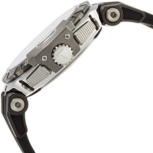 TISSOT - мужские кварцевые наручные часы Корпус этих часов крупного размера (453 мм) и выполнен из нержавеющей стали L316 PVD-покрытием черного цвета Модель имеет устойчивое к царапинам сапфировое стекло, ремешок из натурального каучука черного цвета, черный циферблат Калибр механизма: ETA G10211 Класс водозащиты: 100 м / 10 АТМ (разрешается плавание и ныряние без акваланга) Дополнительные функции и особенности: отображение числа, хронограф (секундомер), тахиметр