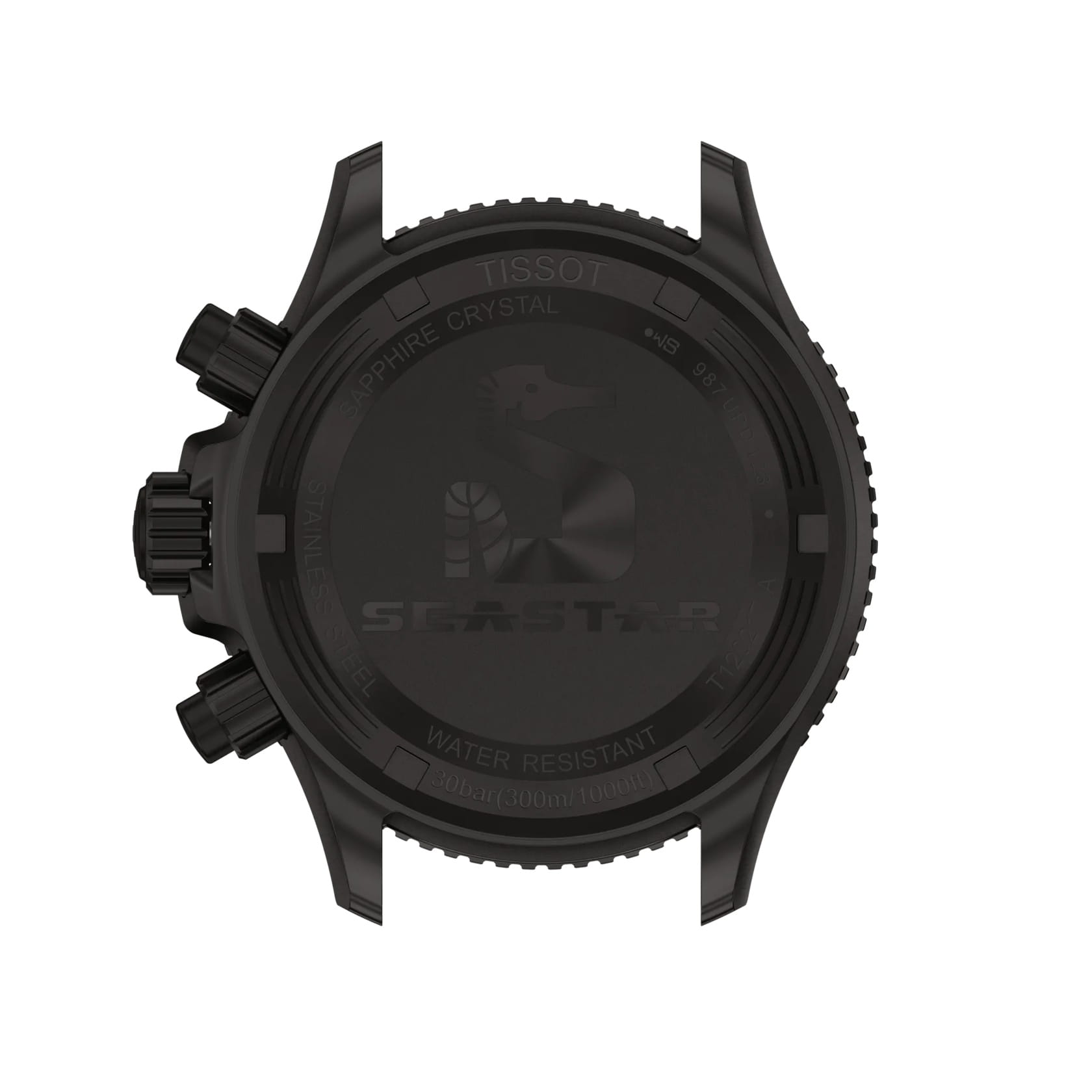 Tissot Seastar 1000 Quartz Chronograph 38mm T120.217.37.061.00 — компактный спортивный хронограф с дайверскими характеристиками. Корпус диаметром 38 мм изготовлен из нержавеющей стали и дополнен чёрным градиентным циферблатом. Безель — поворотный, с чёрным алюминиевым кольцом и 60-минутной шкалой. Циферблат защищён сапфировым стекломСапфировое стеклоПрочный и надёжный материал из кристалла сапфира синтетического происхождения, характеризующийся особой твёрдостью и устойчивостью к царапинам и повреждениям. с антибликовым покрытиемАнтибликовое покрытиеСлой оксида металла в 0,13-0,3 микрон, благодаря которому стекло часов не бликует и не отражает свет. Антибликовое покрытие уменьшает отражение света в 10 раз, обеспечивая отличную читаемость показателей циферблата.. Часовые метки и стрелки с люминесцентным покрытиемЛюминесцентное покрытиеПозволяет считывать показания времени в темноте. Производители наносят на стрелки, часовые индексы, безель или поверхность циферблата светонакопительный состав, дающий холодное свечение. обеспечивают читаемость даже в условиях плохого освещения. На циферблате расположены три счётчика: 1/10 секунды, 60 секунд и 30 минут. Также присутствует окно даты между «4» и «5 часами». Внутри установлен швейцарский кварцевый хронографХронографФункция позволяет измерять отрезки времени с особой точностью: часы, минуты, секунды. Верным признаком хронографа является наличие на циферблате 3 дополнительных окошек-счётчиков., обеспечивающий высокую точность и удобство использования. Модель укомплектована силиконовым белым ремешком с классической застёжкой. Водонепроницаемость до 300 метров делает Seastar 1000 идеальным спутником для плавания и водных видов спорта. Tissot Seastar T120.217.17.011.00 — утончённый дайверский хронограф с профессиональной функциональностью и стильным внешним видом.