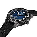 Аксессуар характеризуется как дайверские часы, водонепроницаемость сохраняется при давлении до 30 бар на глубине 300 метров. Модель имеет чёрно-синие исполнение, последний оттенок был реализован благодаря PVD-покрытиюPVDУльтратонкое покрытие наносится в технике вакуумного напыления, сочетает в себе нитрид титана особой прочности со слоем золота или оксида хрома. Несёт в себе декоративную или защитную функцию.. Внутри герметичного корпуса с завинчивающейся заводной головкой находится популярный швейцарский калибр Powermatic 80Powermatic 80Эксклюзивный калибр от швейцарской компании ETA с увеличенным запасом хода до 80 часов за счёт удлинённой заводной пружины. Характеризуется улучшенной системой спуска со сниженным трением. с запасом хода до 80 часов. Прозрачная задняя крышка. Вращающийся безельБезельВнешний ободок, закрепляющий стекло. В спортивных часах так называется поворотное кольцо с делениями на циферблате, выполняет роль таймера – замеряет отрезки времени на шкале. Неподвижный безель – элемент декора. Однонаправленно вращающийся безель на дайверских часах позволяет фиксировать моменты погружения и выныривания на поверхность. с минутной шкалой. Люминесцентная подсветкаЛюминесцентное покрытиеПозволяет считывать показания времени в темноте. Производители наносят на стрелки, часовые индексы, безель или поверхность циферблата светонакопительный состав, дающий холодное свечение.. Окошко даты. Габариты: 40 x 40 x 12,5 мм.