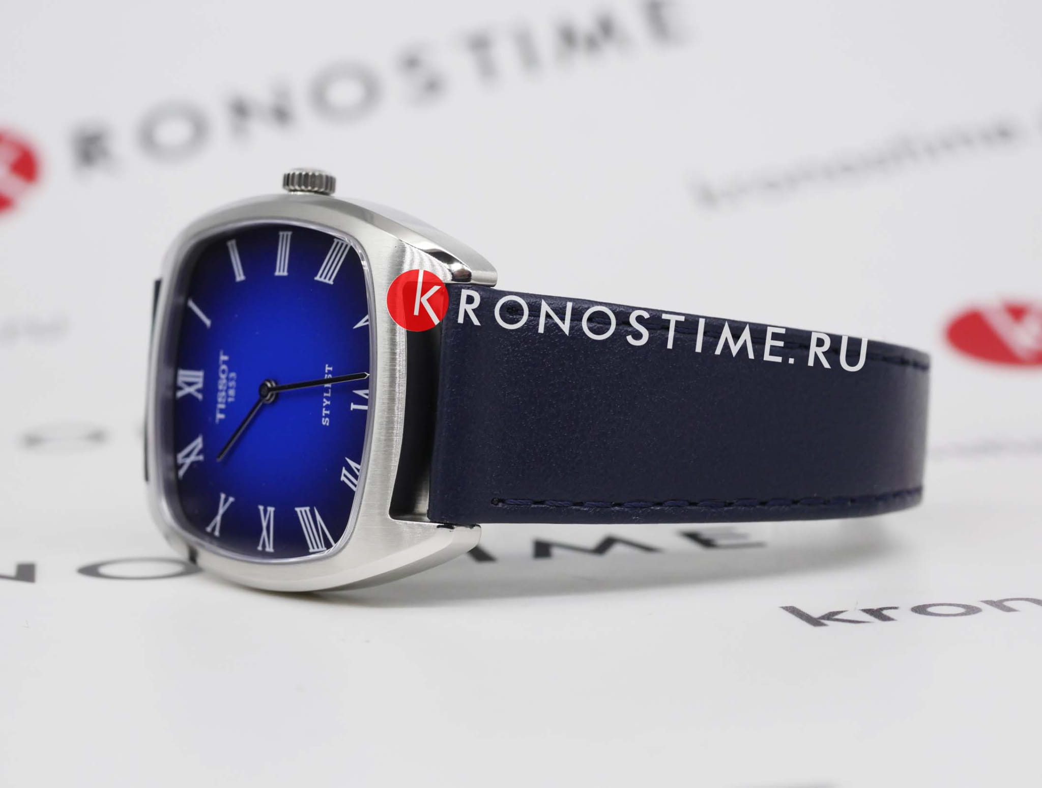 Tissot Stylist (модель T159.909.16.043.00) – элегантные женские часы, сочетающие ретро-стиль с современными технологиями. Квадратный корпус 32 × 32 мм выполнен из нержавеющей стали 316L, что обеспечивает прочность и долговечность. Градиентный синий циферблат с плавным переходом оттенков защищён сапфировым стекломСапфировое стеклоПрочный и надёжный материал из кристалла сапфира синтетического происхождения, характеризующийся особой твёрдостью и устойчивостью к царапинам и повреждениям., устойчивым к царапинам.