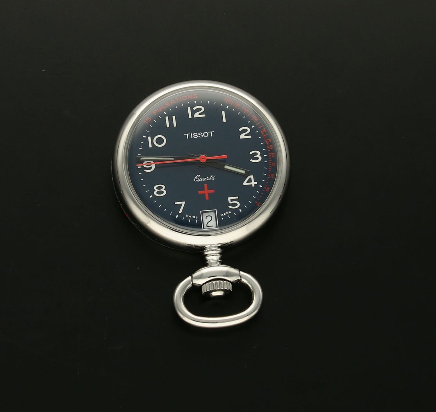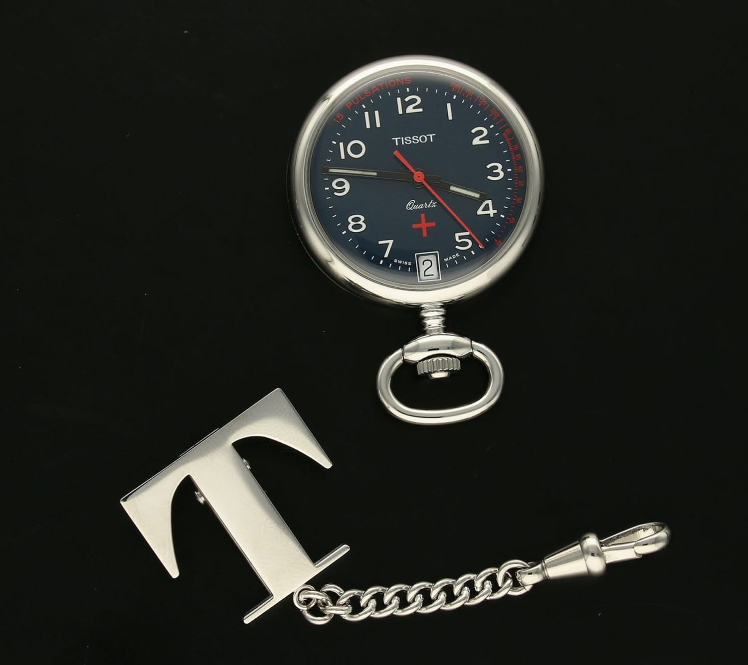 Карманные швейцарские часы Tissot T-Pocket Infirmières T869.210.19.042.00, кварцевый механизм с высокой точностью. Круглый стальной корпус, защищенный хезалитовым стеклом. Класс водозащиты: 30 метров, позволит защитить корпус от случайных брызг или капель дождя. Стрелки с люминесцентным покрытиемЛюминесцентное покрытиеПозволяет считывать показания времени в темноте. Производители наносят на стрелки, часовые индексы, безель или поверхность циферблата светонакопительный состав, дающий холодное свечение.. Окошко даты находится в положении 6 часов. Функция EOLEOLПредставляет собой систему, уведомляющую владельца часов о необходимости замены элемента питания. За 2 недели до полного разряда батарейки секундная стрелка перестаёт ходить чётко и начинает перепрыгивать на 3-4 деления..