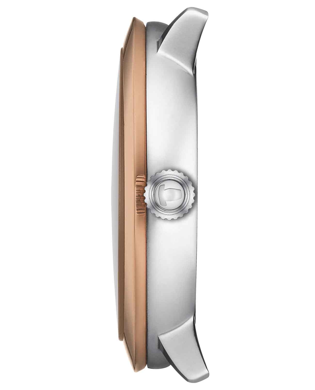 Перламутровый циферблат идеально смотрится в сочетании с элегантным безелемБезельВнешний ободок, закрепляющий стекло. В спортивных часах так называется поворотное кольцо с делениями на циферблате, выполняет роль таймера – замеряет отрезки времени на шкале. Неподвижный безель – элемент декора. Однонаправленно вращающийся безель на дайверских часах позволяет фиксировать моменты погружения и выныривания на поверхность., выполненным из 18-ти каратного розового золота18-каратное золотоОбозначение по каратной системе пробирования, оно показывает, сколько драгоценного металла содержится в изделии. 18 карат - в составе 75% чистого золота, соответствует 750 пробе.