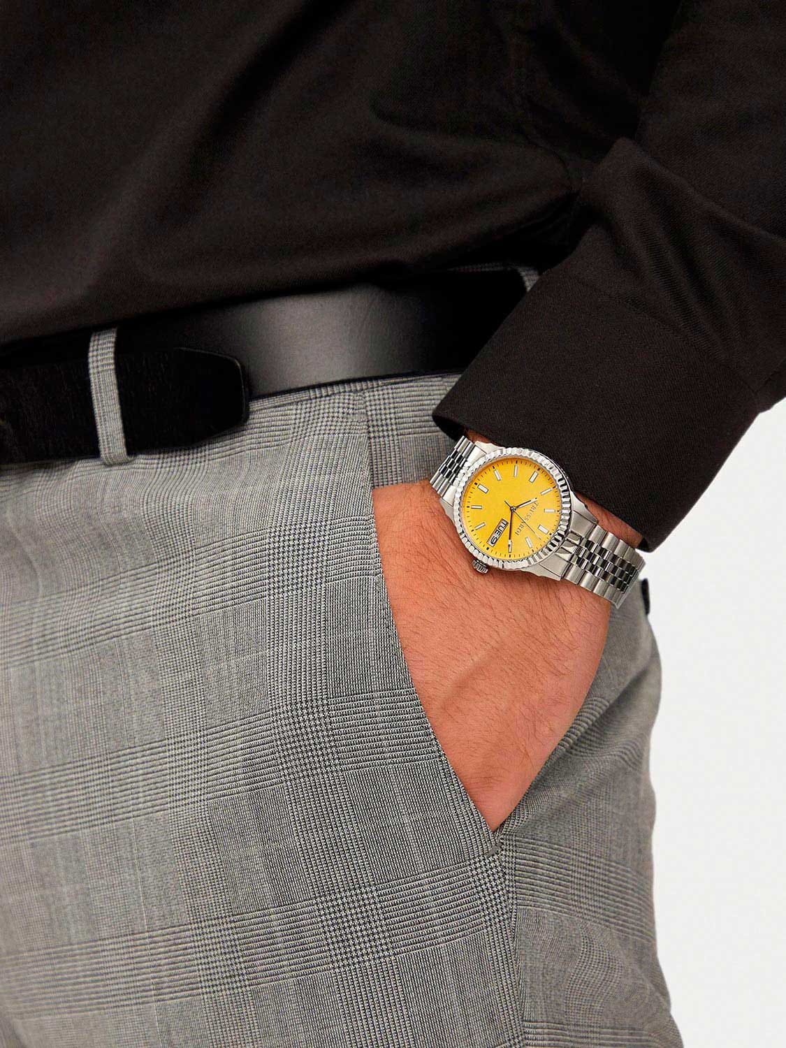Итальянские мужские часы Trussardi T-Bent R2453141013 - это стильный мужской аксессуар, который сочетает элегантный дизайн и практичность. Корпус выполнен из нержавеющей стали, что обеспечивает долговечность и утончённый внешний вид. Надежное минеральное стеклоМинеральное стеклоМинеральное стекло представляет собой искусственно выращенный минерал кварца. Такое стекло отличается особой устойчивостью к повреждениям и царапинам. Уступает по некоторым качествам сапфировому стеклу. защищает циферблат от царапин и обеспечивает долговечность. Модель оснащена кварцевым механизмом, обеспечивающим высокую точность хода. Браслет из нержавеющей стали с раскладной застёжкойРаскладная застёжкаТакой тип застёжки используется только на браслетах из металла. Она никогда не раскрывается полностью, происходит разделение на 2 и более частей. Раскладывающая застёжка снизит вероятность потери часов к минимуму. обеспечивает комфортное ношение. Водозащита 50 метров позволит защитить корпус от случайных брызг или капель дождя. Окошки даты и дня недели находятся в положении 3 часа. Стрелки и метки оснащены люминесцентным покрытиемЛюминесцентное покрытиеПозволяет считывать показания времени в темноте. Производители наносят на стрелки, часовые индексы, безель или поверхность циферблата светонакопительный состав, дающий холодное свечение., обеспечивающим отличную видимость даже при слабом освещении. Эта модель – отличный выбор для тех, кто ищет сочетание стиля, качества и функциональности. Часы станут не только полезным аксессуаром, но и выразительным элементом вашего имиджа.