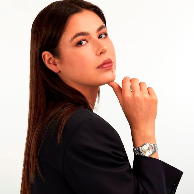 Итальянские женские часы Trussardi T-Bent R2453144512 - это стильный женский аксессуар, который сочетает элегантный дизайн и практичность. Корпус выполнен из нержавеющей стали, что обеспечивает долговечность и утончённый внешний вид. БезельБезельВнешний ободок, закрепляющий стекло. В спортивных часах так называется поворотное кольцо с делениями на циферблате, выполняет роль таймера – замеряет отрезки времени на шкале. Неподвижный безель – элемент декора. Однонаправленно вращающийся безель на дайверских часах позволяет фиксировать моменты погружения и выныривания на поверхность. с алмазной гранью. Надежное минеральное стеклоМинеральное стеклоМинеральное стекло представляет собой искусственно выращенный минерал кварца. Такое стекло отличается особой устойчивостью к повреждениям и царапинам. Уступает по некоторым качествам сапфировому стеклу. защищает циферблат от царапин и обеспечивает долговечность. Модель оснащена кварцевым механизмом, обеспечивающим высокую точность хода. Браслет из нержавеющей стали на раскладной застёжкеРаскладная застёжкаТакой тип застёжки используется только на браслетах из металла. Она никогда не раскрывается полностью, происходит разделение на 2 и более частей. Раскладывающая застёжка снизит вероятность потери часов к минимуму. обеспечивает комфортное ношение. Водозащита 50 метров позволит защитить корпус от случайных брызг или капель дождя. Эта модель – отличный выбор для тех, кто ищет сочетание стиля, качества и функциональности. Часы станут не только полезным аксессуаром, но и выразительным элементом вашего имиджа. В комплекте браслет.