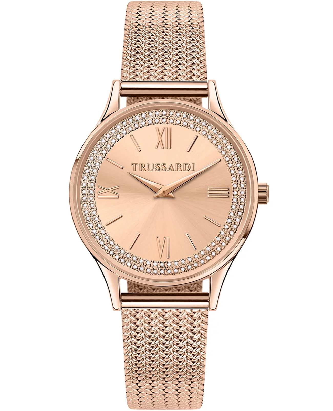 Итальянские женские часы Trussardi T-Star R2453152505 - это стильный женский аксессуар, который сочетает элегантный дизайн и практичность. Корпус выполнен из нержавеющей стали с IP-покрытиемIP-покрытиеМетод ионного напыления. Демонстрирует повышенную устойчивость к истиранию, окислению и химическим веществам. Под воздействием высокого давления и температуры около 1500°C молекулы металла надёжно соединяются с частицами корпуса часов., что обеспечивает долговечность и утончённый внешний вид. Надежное минеральное стеклоМинеральное стеклоМинеральное стекло представляет собой искусственно выращенный минерал кварца. Такое стекло отличается особой устойчивостью к повреждениям и царапинам. Уступает по некоторым качествам сапфировому стеклу. защищает циферблат от царапин и обеспечивает долговечность. Циферблат украшен кристаллами. Модель оснащена кварцевым механизмом, обеспечивающим высокую точность хода. Браслет из нержавеющей стали с IP-покрытиемIP-покрытиеМетод ионного напыления. Демонстрирует повышенную устойчивость к истиранию, окислению и химическим веществам. Под воздействием высокого давления и температуры около 1500°C молекулы металла надёжно соединяются с частицами корпуса часов. с раскладным замкомРаскладной замокДанный вариант застежки используется только на часах с металлическим браслетом. Отличительная особенность такого крепления в том, что длина браслета становится универсальной и вы можете самостоятельно отрегулировать нужный вам размер – застежка просто двигается по браслету часов. обеспечивает комфортное ношение. Водозащита 50 метров позволит защитить корпус от случайных брызг или капель дождя. Эта модель – отличный выбор для тех, кто ищет сочетание стиля, качества и функциональности. Часы станут не только полезным аксессуаром, но и выразительным элементом вашего имиджа.