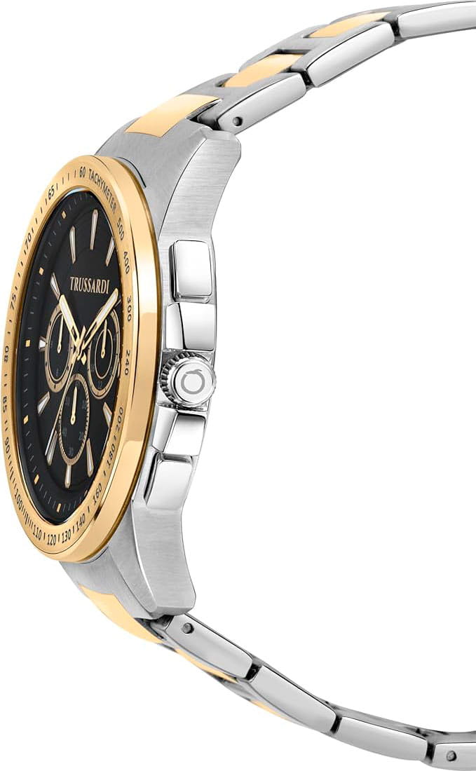 Итальянские мужские часы Trussardi T-Hawk R2453153001 - это стильный мужской аксессуар, который сочетает элегантный дизайн и практичность. Корпус выполнен из нержавеющей стали с безелемБезельВнешний ободок, закрепляющий стекло. В спортивных часах так называется поворотное кольцо с делениями на циферблате, выполняет роль таймера – замеряет отрезки времени на шкале. Неподвижный безель – элемент декора. Однонаправленно вращающийся безель на дайверских часах позволяет фиксировать моменты погружения и выныривания на поверхность. с IP-покрытиемIP-покрытиеМетод ионного напыления. Демонстрирует повышенную устойчивость к истиранию, окислению и химическим веществам. Под воздействием высокого давления и температуры около 1500°C молекулы металла надёжно соединяются с частицами корпуса часов., что обеспечивает долговечность и утончённый внешний вид. Шкала тахиметраТахиметрРазмеченная шкала, располагается на ободке или безеле часов. Тахиметр позволяет рассчитать скорость на определённом участке пути, расстояние измеряется в километрах или милях. на безелеБезельВнешний ободок, закрепляющий стекло. В спортивных часах так называется поворотное кольцо с делениями на циферблате, выполняет роль таймера – замеряет отрезки времени на шкале. Неподвижный безель – элемент декора. Однонаправленно вращающийся безель на дайверских часах позволяет фиксировать моменты погружения и выныривания на поверхность.. Надежное минеральное стеклоМинеральное стеклоМинеральное стекло представляет собой искусственно выращенный минерал кварца. Такое стекло отличается особой устойчивостью к повреждениям и царапинам. Уступает по некоторым качествам сапфировому стеклу. защищает циферблат от царапин и обеспечивает долговечность. Модель оснащена кварцевым механизмом, обеспечивающим высокую точность хода. Браслет из нержавеющей стали с частичяным IP-покрытиемIP-покрытиеМетод ионного напыления. Демонстрирует повышенную устойчивость к истиранию, окислению и химическим веществам. Под воздействием высокого давления и температуры около 1500°C молекулы металла надёжно соединяются с частицами корпуса часов. с раскладной застёжкойРаскладная застёжкаТакой тип застёжки используется только на браслетах из металла. Она никогда не раскрывается полностью, происходит разделение на 2 и более частей. Раскладывающая застёжка снизит вероятность потери часов к минимуму. обеспечивает комфортное ношение. Водозащита 50 метров позволит защитить корпус от случайных брызг или капель дождя. Вынесенный циферблат с 24-х и 12- ти часовым указателем времени, а также вынесенный циферблат с хронографомХронографФункция позволяет измерять отрезки времени с особой точностью: часы, минуты, секунды. Верным признаком хронографа является наличие на циферблате 3 дополнительных окошек-счётчиков.. Стрелки и метки оснащены люминесцентным покрытиемЛюминесцентное покрытиеПозволяет считывать показания времени в темноте. Производители наносят на стрелки, часовые индексы, безель или поверхность циферблата светонакопительный состав, дающий холодное свечение., обеспечивающим отличную видимость даже при слабом освещении. Эта модель – отличный выбор для тех, кто ищет сочетание стиля, качества и функциональности. Часы станут не только полезным аксессуаром, но и выразительным элементом ваше