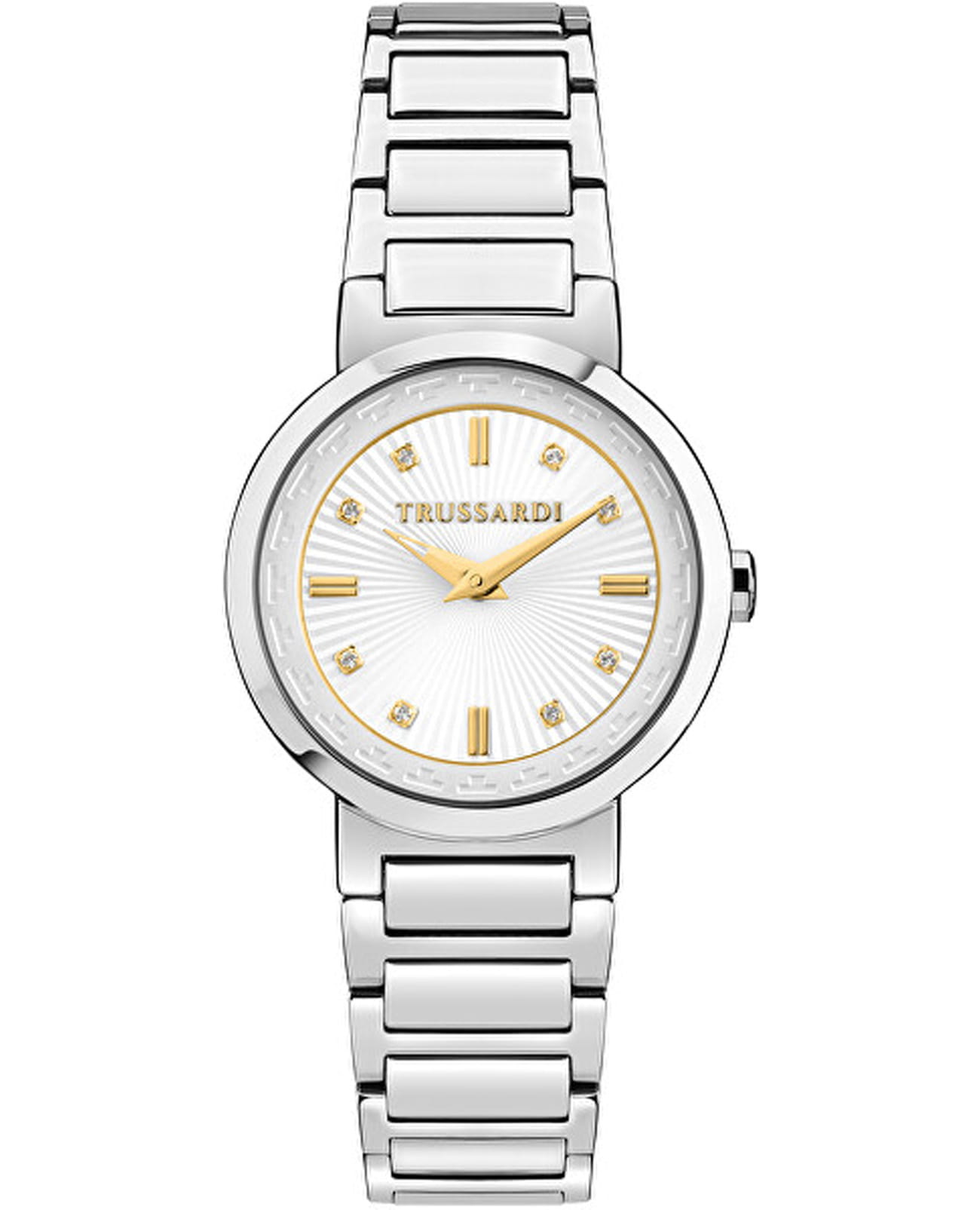Итальянские женские часы Trussardi T-Bridge R2453171506 - это стильный женский аксессуар, который сочетает элегантный дизайн и практичность. Корпус выполнен из нержавеющей стали, что обеспечивает долговечность и утончённый внешний вид. Надежное минеральное стеклоМинеральное стеклоМинеральное стекло представляет собой искусственно выращенный минерал кварца. Такое стекло отличается особой устойчивостью к повреждениям и царапинам. Уступает по некоторым качествам сапфировому стеклу. защищает циферблат с кристаллами от царапин и обеспечивает долговечность. Модель оснащена кварцевым механизмом, обеспечивающим высокую точность хода.  Браслет из нержавеющей стали на раскладной застёжкеРаскладная застёжкаТакой тип застёжки используется только на браслетах из металла. Она никогда не раскрывается полностью, происходит разделение на 2 и более частей. Раскладывающая застёжка снизит вероятность потери часов к минимуму. обеспечивает комфортное ношение. Водозащита 50 метров позволит защитить корпус от случайных брызг или капель дождя. Эта модель – отличный выбор для тех, кто ищет сочетание стиля, качества и функциональности. Часы станут не только полезным аксессуаром, но и выразительным элементом вашего имиджа. В комплекте браслет.
