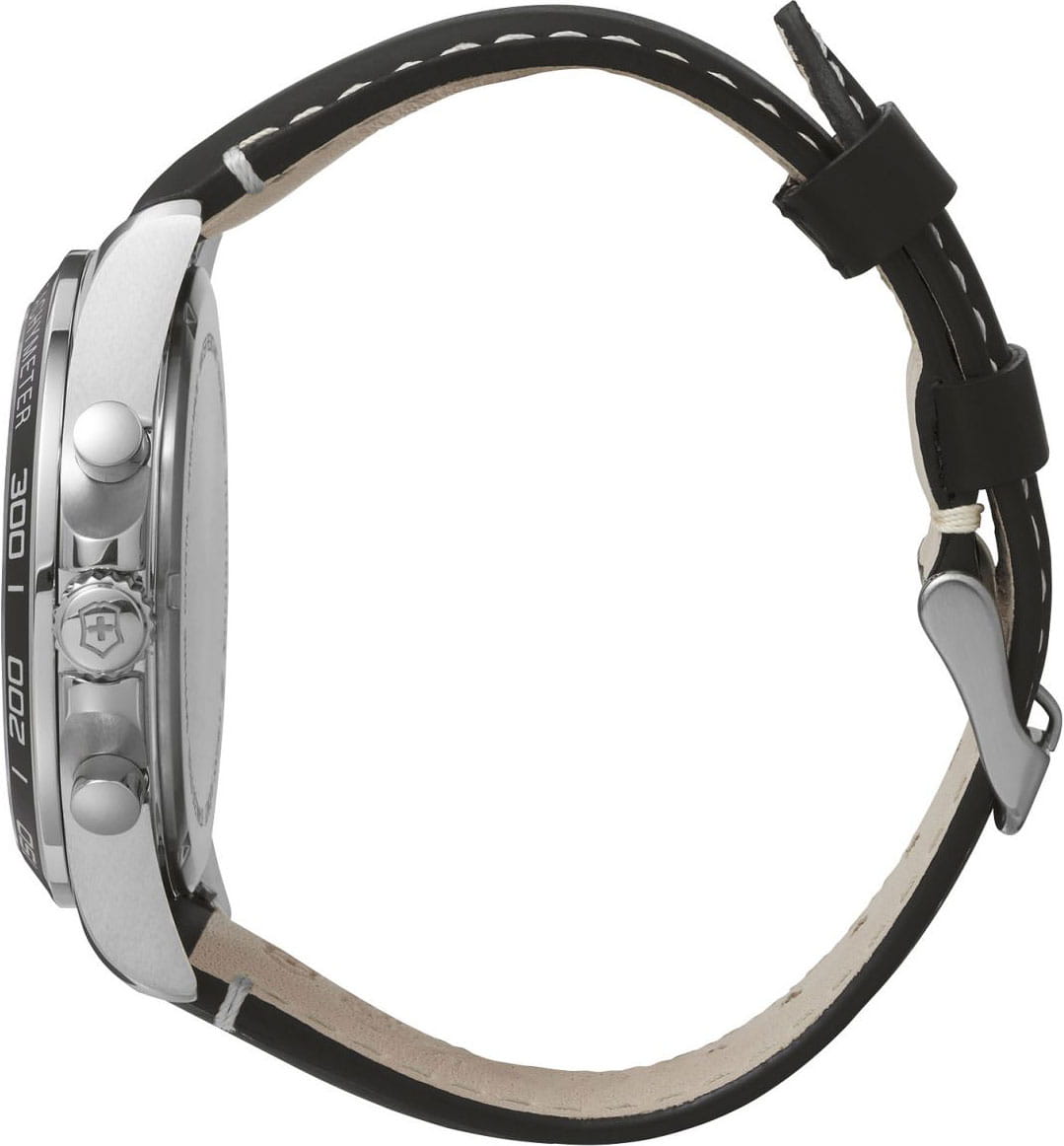 Мужские швейцарские часы-хронографХронографФункция позволяет измерять отрезки времени с особой точностью: часы, минуты, секунды. Верным признаком хронографа является наличие на циферблате 3 дополнительных окошек-счётчиков. Victorinox Fieldforce Chronograph 241852 с надёжным кварцевым механизмом. Сапфировое стеклоСапфировое стеклоПрочный и надёжный материал из кристалла сапфира синтетического происхождения, характеризующийся особой твёрдостью и устойчивостью к царапинам и повреждениям. с трёхслойным антибликовым покрытием. Корпус часов выполнен из стали с PVD-покрытиемPVDУльтратонкое покрытие наносится в технике вакуумного напыления, сочетает в себе нитрид титана особой прочности со слоем золота или оксида хрома. Несёт в себе декоративную или защитную функцию.. Практичный кожаный ремешок на стандартной застёжке. Влагозащита: 100 метров, позволит плавать, нырять и заниматься другими водными видами спорта. Окошко даты находится в положении 6 часов, стрелки и метки с люминесцентным покрытиемЛюминесцентное покрытиеПозволяет считывать показания времени в темноте. Производители наносят на стрелки, часовые индексы, безель или поверхность циферблата светонакопительный состав, дающий холодное свечение., тахиметрТахиметрРазмеченная шкала, располагается на ободке или безеле часов. Тахиметр позволяет рассчитать скорость на определённом участке пути, расстояние измеряется в километрах или милях..