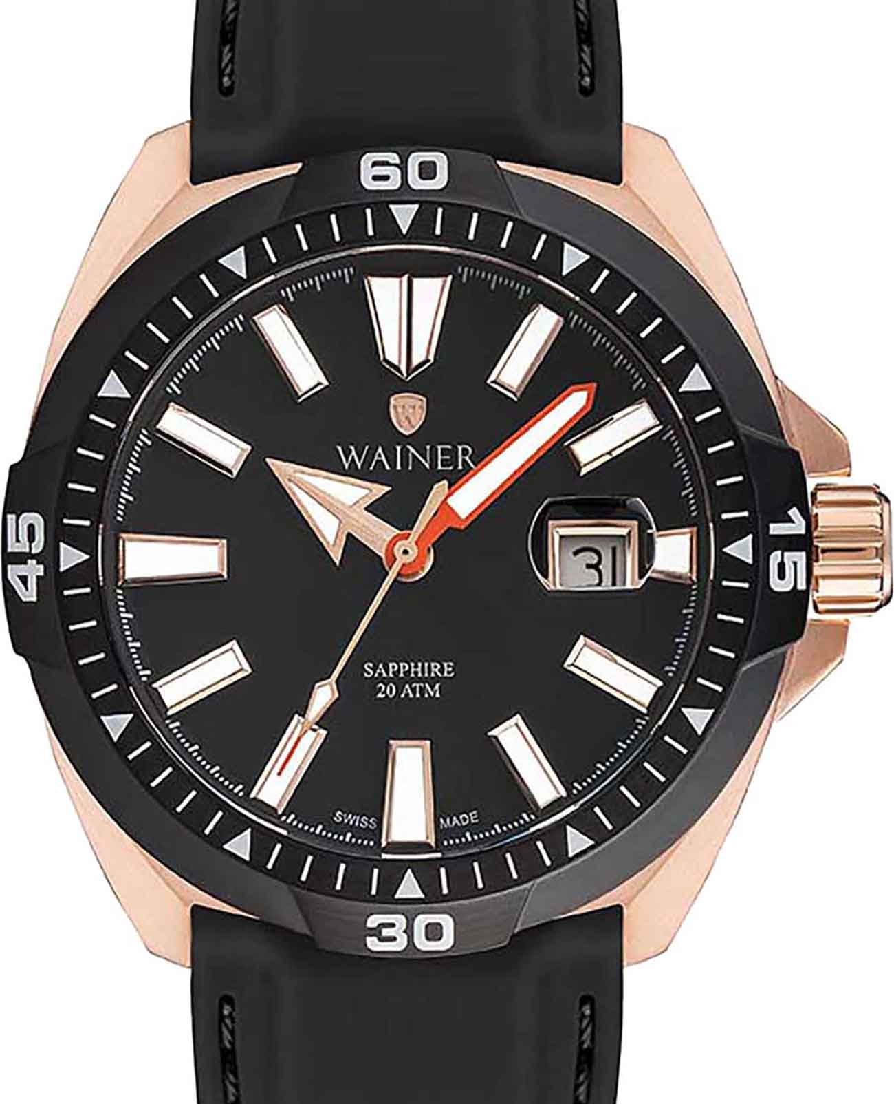 Швейцарские мужские кварцевые часы Wainer WA.10922-D с механизмом калибра Ronda 515 станут превосходным выбором для мужчин, ценящих надежность и стиль. Круглый корпус из нержавеющей стали 316L с частичным PVD-покрытиемPVDУльтратонкое покрытие наносится в технике вакуумного напыления, сочетает в себе нитрид титана особой прочности со слоем золота или оксида хрома. Несёт в себе декоративную или защитную функцию. диаметром 44 мм защищен прочным сапфировым стекломСапфировое стеклоПрочный и надёжный материал из кристалла сапфира синтетического происхождения, характеризующийся особой твёрдостью и устойчивостью к царапинам и повреждениям.. Циферблат украшен фирменным логотипом Wainer и метками в виде штрихов, а окошко даты с увеличительным стеклом расположено в положении 3 часа. Рифленая заводная головка с защитой обеспечивает дополнительную надежность механизма. Часы имеют класс водозащиты 200 метров, позволит плавать, нырять и заниматься другими водными видами спорта. Модель комплектуется силиконовым ремешком на стандартной застежке. Прочный корпус и высококачественный механизм гарантируют долговечность использования, делая эти часы идеальным аксессуаром для активного образа жизни.
